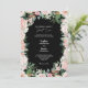 Convite Blush Floral Black Simple Nada Casamento de Rico