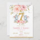 Convite Blush Floral Cute Elephant Twin Girls 7 Aniversári