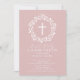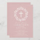 Lindos convites da Primeira Comunhão com uma delicada coroa floral e cruz sobre fundo rosa-pincelado. Sacudir nosso convite para ver uma coordenação de volta para um toque especial extra. Visite nosso compro para ver toda nossa coleção religiosa.