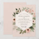 This design features a romantic arrangement of blush and peach anemones. Soft watercolor foliage in shades of sage green elegantly surrounds the central area. The overall aesthetic is delicate and botanical, perfect for a spring or summer union. A soft pink background completes this ethereal composition.