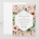 A romantic and ethereal aesthetic is created with a delicate wash of blush pink. Painterly anemone-style blossoms in dusty rose hues bloom amongst soft sage green foliage. This artistic botanical arrangement exudes gentle elegance, perfect for a sophisticated spring or summer union.