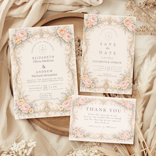 Convite Blush Peach Baroque Rose Wedding