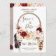 Sua celebração boho pode ser rústica e elegante ao mesmo tempo. Este lindo design de Save the Date apresenta o melhor dos dois mundos. Com belas flores em aquarela em rosa beije, rosa burgundy e pêssego delicioso adornando um dreamcatcher boho com penas e flores, este design certamente vai entusiasmar seus convidados em antecipação ao seu grande dia. Combina com outros designs em nossa loja para criar um conjunto completo e é totalmente personalizável para qualquer ocasião! Pode ser usado para um casamento, aniversário, chá de noiva ou chá de bebê, formatura ou qualquer outro grande evento!