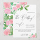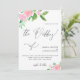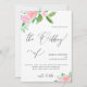 Os bonito buquês florais cor-de-rosa com verde e caligrafia adorável na frente, e o lindo impressão floral de aquarelas nas costas fazem este design perfeito para um primavera romântico ou casamento de verão.