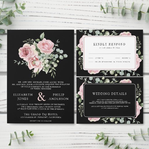 Blush Pink Floral Eucalyptus Black WeddingCriado por Shabbir D