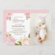 Convite de bênção floral, branco e elegante, que inclui ilustrações em aquarela desenhadas à mão de peões e rosas cor-de-rosa. Este convite de bênção fotográfica é perfeito para primavera e batismos de verão. Personalize adicionando sua foto e detalhes do evento.