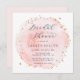 Convite Blush Rosa Dourado Brilho Quadrado Chuva de Arroz