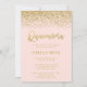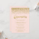 Convite Blush Rosa Moderno Brilho de Faux Dourado Quincean