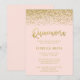 Convites de 15º Aniversário Glamourosos blush rosa e brilho de faux dourado Quinceanera. Os designs são ilustrações/gráficos impressos planos - BRILHO DE OURO NÃO É REAL.