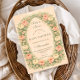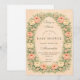 An ornate floral arch of peach and buttercream roses surrounds this romantic garden-inspired design, creating a soft heirloom aesthetic with timeless charm. Delicate greenery, layered blossoms, and a classic oval frame give it a refined Victorian feel while keeping the layout airy and balanced. Perfect for a spring celebration, garden brunch, or elegant afternoon gathering. The structured botanical border frames your event details beautifully while maintaining a graceful, storybook finish.