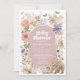 Set against a soft dusty rose backdrop, this invitation features charming woodland animals—including a fox, deer, bunny, raccoon, bear, and owl—nestled among wildflowers, butterflies, and natural botanical elements. The subdued tones and painterly details create a refined boho woodland aesthetic that feels both whimsical and sophisticated.