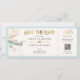 Bring your guests on a journey of love with this watercolor boarding pass airplane wedding save the date. Inspired by travel and adventure, it features dreamy teal, aqua, and sea-green hues accented with touches of gold foil. Perfect for destination weddings and jet-setting couples, this romantic design captures the essence of wanderlust with elegant airplane details and vintage ticket styling. The watercolor artistry adds a soft, dreamy feel that reflects your unique love story. Ideal for travel enthusiasts planning beach or tropical celebrations, it sets the tone for an unforgettable event. Customize yours to match your wedding colors and destination today.