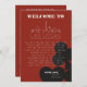 Um cartões de agradecimentos de presente de boas-vindas de destino divertido e moderno para obrigado seus convidados por vir ao seu evento em Las Vegas! Esta placa de mala de boas-vindas do casamento apresenta grafite negrito com placa gráfica de jogo, uma renderização moderna do horizonte de Las Vegas, e fonte e texto totalmente personalizáveis sobre fundo vermelho do casino. No verso estão os detalhes personalizáveis do itinerário do fim de semana do casamento. Perfeito para um evento tradicional moderno ou clássico - esta elegante coleção de convites é versátil!