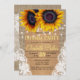 Subiça russa elegante outono outono outono festa de aniversário de na moda de convite para modelo de de convite para bétulas sobre burlap chos bege faux apresentando um monte de girassóis de ouro amarelo, cordas de luzes brilhantes brancas e cantos de renda. +++++++++++++++ Fácil de personalizar com seus detalhes! ++++++++++ O convite é adequado para o país rústico elegante/jardim ou quintal/festas de aniversário de churrasco.