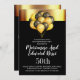 Um convite de aniversário de casamento de 50 anos elegante, metálico dourado e preto, com balões dourados e pretos e tipografia em letra cursiva branca. Personalize para qualquer aniversário de casamento. Um estilo popular e moderno para um convite de aniversário de casamento dourado e preto que adiciona elegância ao seu dia especial. Você pode clicar em "personalizar mais" e usar nossa ferramenta de design para selecionar outro estilo de letra, se preferir. Para ajuda, entre em contato comigo através da Zazzle.