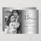 Convite de Bodas de 15 anos de Casamento com Foto. Design elegante em prata com fonte cursiva e confetes de diamantes. Pode ser personalizado para mostrar qualquer ano de casamento. Saúde por 15 anos!