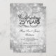 Festa de Bodas de Prata de 25 Anos de Casamento elegante Winter Wonderland com modelo de convite de prata com flocos de neve e brilhos.