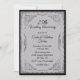 Convite de bodas de casamento elegante feito em cinza carvão claro e preto com borda em tom de prata rebuscado. Personalize todos os campos de texto para o seu dia especial.