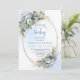 Convite Bohemian Dusty Blue Floral Gold Baby Shower Invite