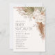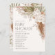 Este design apresenta floral boêmico neutro com folhas de palma, penas e uma letra retrô em negrito.