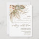 Personalize este convite de casamento boêmico com sua própria redação fácil e rapidamente, basta pressionar o botão personalizá-lo para reorganizar e formatar o estilo e a colocação do texto. Apresentando elegantes tons de terra de aquarelas florais, gramíneas-pampas e folhas de palma secas. Itens correspondentes disponíveis no repositório! (c) O feliz Cat Studio.