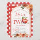 Apple Second Birthday Girl Invitation, A maçã do nosso olho está virando dois, Apple Gingham segundo aniversário Fall