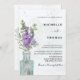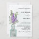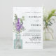 Boho convite para o casamento, com folhagem verde de sábado, lavanda e eucalipto dispostos em garrafa de safra e pintados em aquarela. Trabalho de arte original e exclusivo criado no estúdio para o seu dia especial. A caligrafia elegante está em preto. Ao contrário, pode adicionar todos os seus detalhes de casamento.