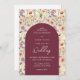 Convite Boho aquarela maroon ivory flores selvagens roxas