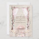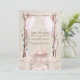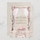 Este elegante e personalizado salvando a data do convite para o casamento apresenta um arco floral de aquarela com um pôr do sol a picos. A autoestrada é formada por galhos e folhas e cortada com uma cortina rosa fluente. Várias flores secas, grama-pampas e flores tropicais são colocadas no fundo em um belo buquê. O fundo é um design de papel pergaminho desbotado, dando-lhe um charme rústico.