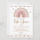 Convite de chuveiro de foster com arco-íris boêmio em tons quentes de terracota e rosa suave. Clique no botão "personalizar mais" se desejar reorganizar e formatar o estilo e a colocação do texto.