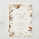 Apresentamos o nosso espantoso outono | código QR bege, tudo num único convite para o casamento, que inclui uma design simples e moderna que reflete a beleza da natureza. Apresentando flores e folhas de terracota de queda seca prensada, ele captura a essência das matizes laranja queimadas em outubro, criando um design mínimo, mas clássico, que expele calor e charme. O design tem um toque caprichoso de elegância que inspira uma delicada sensação de safra, onde folhas verdes de sábio, sotaques de cobre ferrugem e tons de terra floral criam um estilo único e inesquecível. Aproveite a beleza do seu dia especial com um produto que capta um design mínimo, mas único, e definirá a cena para uma experiência de casamento verdadeiramente memorável. Contacte-nos com quaisquer perguntas sobre o design, e deixe-nos ajudá-lo a fazer o casamento dos seus sonhos.