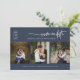 Este convite para salvar a data apresenta um elegante estilo moderado e minimalista de uma colagem de três (tri) fotos com uma caligrafia moderna do texto "Salvar a Data" e fontes elegantes da Serif para um olhar minimalista e moderno limpo sobre um fundo azul marinho, que é uma bela maneira de informar sobre o seu próximo casamento. Anuncie à sua família e amigos que vai se casar com este convite e adicione um toque pessoal com belas fotos de você e sua próxima metade melhor. A simplicidade desta design adiciona um toque de elegância ao seu casamento. Funciona bem com muitos temas de casamento e definitivamente um excelente extra para o seu casamento. Basta personalizar os nomes e o texto em alguns passos fáceis e personalizar o cartão de convite com sua foto do casal feliz e substituir o Código QR pelo seu. Observe que o texto "Salvar a data" juntamente com outros trabalho de arte gráficos e elementos não podem ser editados, alterados ou excluídos. Se precisar alterar a cor, você pode personalizar o cartão de convite. Você pode personalizar e personalizar o convite para ajustado das suas necessidades de evento de casamento e clicar em personalizar o convite. Você pode personalizar facilmente o convite com o texto como um download digital e enviá-lo eletronicamente e compartilhá-lo com seus convidados através de mensagem de texto, email ou mídia social. Ou também pode optar por enviar/postar o convite relativo aos seus detalhes aos seus convidados. Ou você pode receber ambos — convite impresso e receber o convite em formato digital como um download instantâneo.