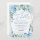 Convite Boho Azul Floral Dourado Geométrico Brunch e Bubbl