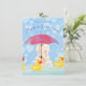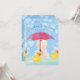 Um tema de chá de um bebê bebezinho de borracha vintage apresenta um bebê de olhos azuis com um guarda-chuva vermelho alegre. O bebê senta-se alegremente entre um bando de patos de borracha amarelos num borrifo de Boho de corações pastéis e chuva suave. Disponível em um tema verde rosa ou azul ou neutro junto com uma adorável coleção de decorações de chás de fraldas coordenadores, jogos de chá de fraldas e favores de chá de fraldas para uma recepção original e caprichosa à celebração de bebês.
