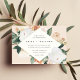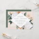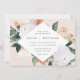 O convite para o casamento floral elegante apresenta os detalhes do seu casamento em letras modernas, em um quadro em forma de diamante geométrico de flores de aquarela pastel e folhagem botânica em tons de terra inspirados no deserto, de pêssego, verde-sábio, branco e marfim.