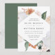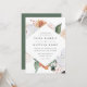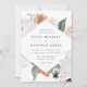 O convite para o casamento floral elegante apresenta os detalhes do seu casamento em letras modernas, em um quadro em forma de diamante geométrico de flores de aquarela pastel e folhagem botânica em tons de terra inspirados no deserto, de pêssego, verde-sábio, branco e marfim.