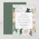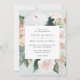 O convite para o casamento floral elegante apresenta os detalhes do seu casamento em letras modernas, em um quadro quadrado de flores de aquarela pastel e folhagem botânica em tons de terra inspirados no deserto de pêssego, verde-sábio, branco e marfim.