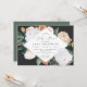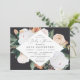 O Elegante convite para chás de fraldas florais apresenta um quadro em forma de diamante de flores de aquarela e folhagem em tons de pêssego, branco, marfim e verde-sábio inspirados no deserto de boho, sobre um fundo preto de carvão. Personalize com os detalhes do seu chá de fraldas.