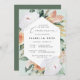 Elegante primeiro convite de comunhão sagrado apresenta um elongado quadro hexagonal de flores de aquarela e folhagem em boho desert inspirado em tons de pêssego, branco, marfim e verde-sábio. Personalize com sua cerimônia religiosa e detalhes do partido comunista em letras modernas.