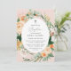 Lindos convites batizantes de batismo apresentando um elegante e moderno tom pastel verde-aquarela botânico verde-floral em tons de terra suave de pêssego, laranja, pincel suave, amarelos, e muitos tons de verde de verde sábio a verdes brilhantes e mais profundos. Seus detalhes personalizados são exibidos em um elevado layout tipográfico que coloca a doce menina na frente e no centro.