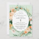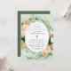Convites de Comunhão lindos com uma moldura elegante moderna de tons pastéis neutros de aquarela botânica floral verdejante em tons terrosos suaves de pêssego, laranja, rosa suave, amarelos e muitos tons de verde, desde verde salvia até verdes mais brilhantes e profundos. Seus detalhes personalizados são exibidos em um layout de tipografia elevada que coloca a menina doce no centro das atenções.
