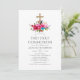 Boho cor-de-rosa-chic e azul-turquesa aquarela floral primeiro convite para comunião sagrado, projetado para ser rápida e facilmente personalizável para suas especificidades de evento.