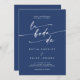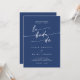 Este boho giz azul real QR com o código espanhol O convite de casamento espanhol é perfeito para um casamento minimalista. O ousado design boêmico azul escuro e moderno apresenta uma caligrafia rústica simples com um estilo único, mas clássico. Inclua um código QR na parte traseira do seu convite de casamento para que o convidado possa facilmente RSVP, ver detalhes ou ambos.