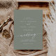 Este convite de casamento verde de sábio boho é perfeito para um casamento minimalista. A moderna design boêmica verde-luz neutra apresenta uma caligrafia rústica simples com um estilo único, mas clássico.