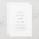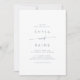Este convite casual de casamento azul de boho chic é perfeito para um casamento minimalista. A pálida design boêmica azul e branca, moderna, apresenta caligrafia rustica simples com um estilo único, mas clássico.