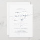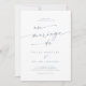 Este convite de casamento francês com o código de QR azul de boho chic é perfeito para um casamento minimalista. A pálida design boêmica azul e branca, moderna, apresenta caligrafia rustica simples com um estilo único, mas clássico. Inclua um código QR na parte traseira do seu convite de casamento para que o convidado possa facilmente RSVP, ver detalhes ou ambos.