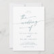 Este boho chic teal e branco o casamento do convite é perfeito para um casamento minimalista. A design da boêmia azul-verde e branca apresenta uma caligrafia rustica simples, com um estilo único, mas clássico, que lembra a praia costeira e um cruzeiro oceânico de Verão