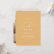 Este convite de casamento casual de marigold amarelo boho é perfeito para um casamento minimalista. A design boêmica moderna, colorida e amarela brilhante, apresenta uma caligrafia rústica simples com um estilo único, mas clássico. Personalize a parte de trás do seu convite de casamento com a sua foto de noivado favorita.