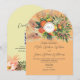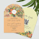 Este vibrante convite de casamento boho cítrico apresenta um formato arqueado moderno com ilustrações de aquarela de laranjas, limões e folhagens. O design da frente inclui nomes em escrita elegante e um brasão de monograma, emoldurado por grama pampas e folhagens tropicais - perfeito para casamentos de verão ou de destino. A parte traseira apresenta uma seção de RSVP com código QR coordenada com um fundo de limão claro para respostas fáceis dos convidados.
