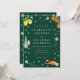 Boho Citrus & Wine Wedding Invitation | Dark Emerald Green Watercolor Botanical Design